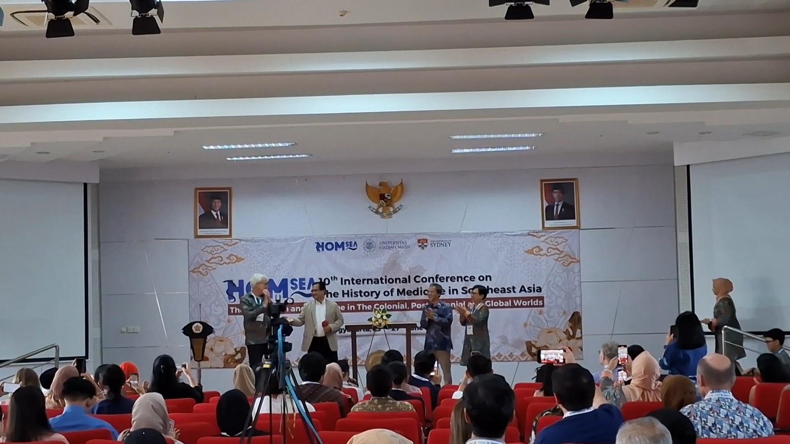 UGM-Yogyakarta. As part of the 10th International Conference on the History of Medicine in Southeast Asia (HOMSEA), a thematic session titled "Health and Medicine in the Colonial, Post-Colonial, and Global Worlds" was held on June 26, 2025, on the 7th floor of the Soegondo Building, Faculty of Cultural Sciences, Universitas Gadjah Mada (UGM). On this occasion, the History Team from PKMK FK-KMK UGM and the History Department of FIB UGM participated in the HOMSEA 2025 Plenary Symposium. This activity was part of the Closing Ceremony of the 10th HOMSEA, held on Thursday (June 26, 2025). In this Plenary Symposium, there were two main speakers, namely Prof. Dr. Menaldi Rasmin, Sp.P(K), FISR, FCCP, and Prof. Dr. dr. Hardyanto Soebono, Sp.D.V.E, Subsp.D.T. The discussion continued with Prof. Budi Mulyono, former Director General of Sardjito General Hospital (2009-2012), followed by Prof. Soenarto Sastro Wijoto, former Dean of the Faculty of Medicine at UGM (1991-1997), and Dr. Slamet Riyadi Yuwono, former Director of Dr. Soetomo General Hospital (2003-2011).