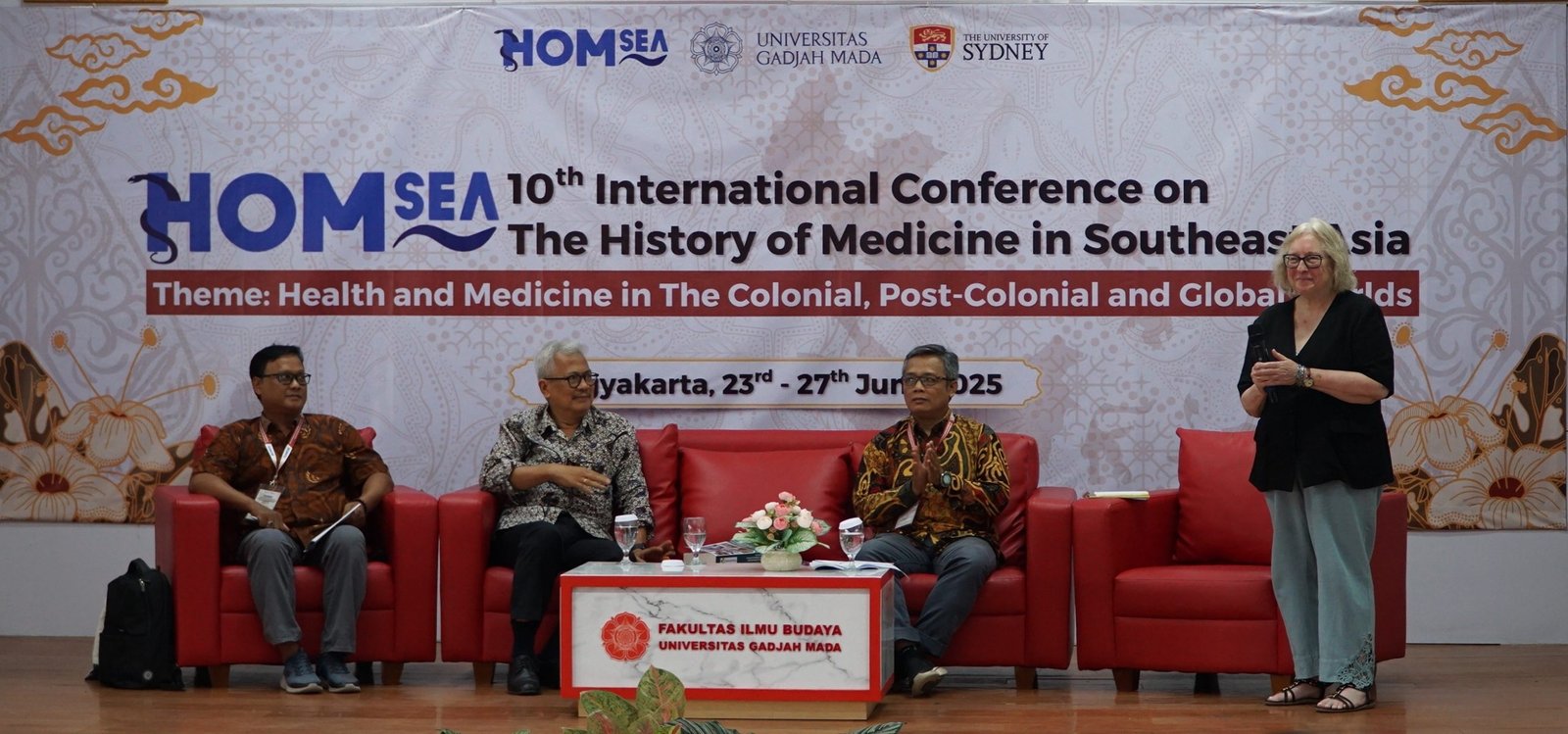 UGM-Yogyakarta. As part of the 10th International Conference on the History of Medicine in Southeast Asia (HOMSEA), a thematic session titled “Health and Medicine in the Colonial, Post-Colonial and Global Worlds” was held on June 25, 2025, at the 7th floor of Soegondo Building, Faculty of Cultural Sciences, Universitas Gadjah Mada (UGM). The session featured an opening address by the Minister of Health of the Republic of Indonesia, Budi Gunadi Sadikin, who emphasized the importance of learning from historical developments in health policy. Prof. Laksono Trisnantoro, Professor at the Department of Health Policy and Management, Faculty of Medicine, Public Health and Nursing, UGM, served as the session discussant. The main presentations were delivered by Abdul Wahid and Bahauddin (historian from UGM), they both offered critical insights into the intersections of history, health systems, and governance. The session concluded with a symbolic handover of the book “Perkembangan Transformasi Kebijakan Kesehatan di Indonesia: Dari Reformasi Hingga Pasca Covid, 1999–2023,” marking an important contribution to the documentation of Indonesia’s health policy evolution in the post-reform and post-pandemic eras.