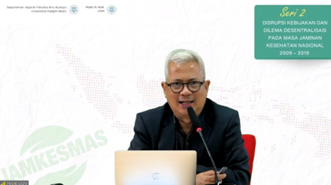 Siswanto mengkritisi bahwa pemahaman terhadap Universal Health Coverage (UHC) di Indonesia masih sempit, karena hanya berfokus pada jumlah peserta, tanpa memperhatikan cakupan manfaat dan beban biaya. Ia juga meninjau sejarah jaminan kesehatan sejak era krisis 1998, hingga penyatuan skema dalam BPJS Kesehatan pada 2014. Sistem pembayaran layanan turut berubah dari Fee for Service ke case-based payment seperti INA-CBGs untuk mengendalikan biaya dan klaim. Namun, sejumlah tantangan tetap ada, seperti rendahnya kepatuhan peserta aktif, pemahaman terbatas terhadap prinsip asuransi sosial, serta munculnya moral hazard dari penyedia maupun peserta layanan. Masalah tumpang tindih pembiayaan dan ketergantungan pada barang impor juga turut memperumit sistem. Sebagai solusi, Dr. Siswanto menawarkan tujuh rekomendasi kebijakan, antara lain revisi UU SJSN, pengembangan asuransi tambahan, penguatan FKTP sebagai gatekeeper, hingga asesmen manajemen rumah sakit dan perluasan Health Technology Assessment. Beliau menutup dengan penekanan bahwa masa depan JKN tidak hanya bergantung pada desain teknis, tetapi juga pada keberanian politik untuk mengevaluasi dan mereformasi struktur kebijakan agar tetap menjamin keadilan dan keberlanjutan sistem kesehatan nasional.