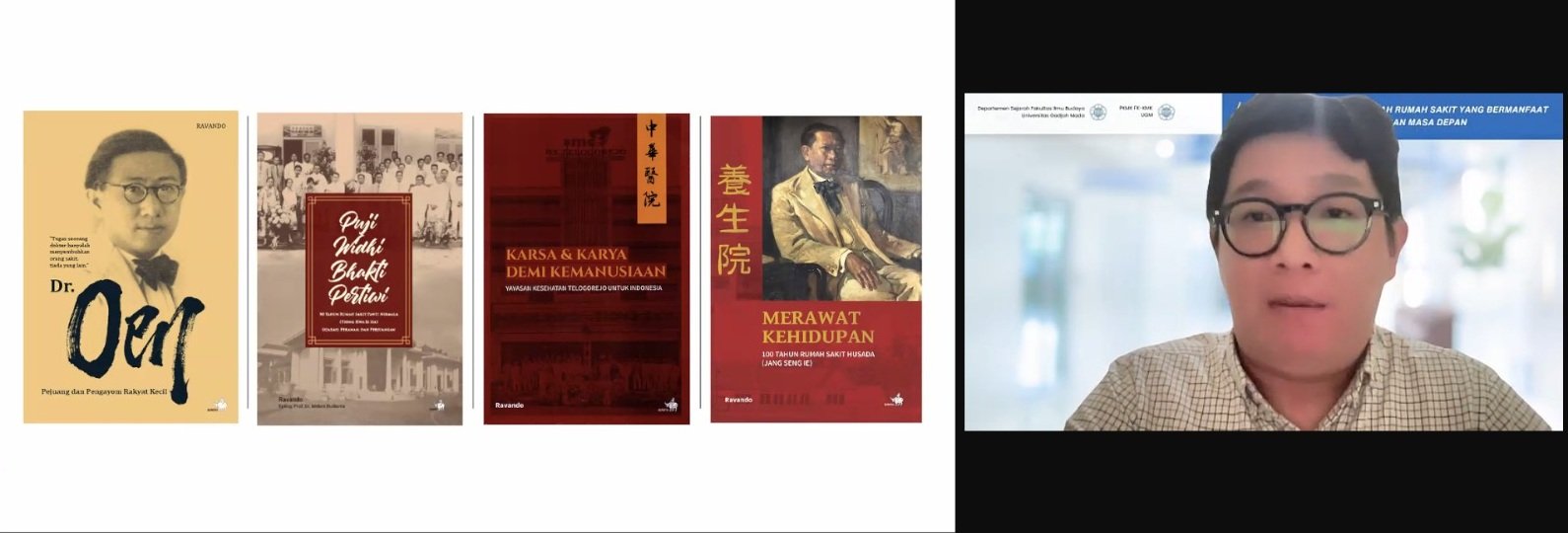 Dr. Ravando menyampaikan bahwa menulis sejarah rumah sakit bukan sekadar mendokumentasikan perjalanannya sebagai institusi medis, melainkan juga menangkap dinamika sosial, budaya, politik, dan kemanusiaan yang membentuk identitas rumah sakit dari waktu ke waktu. Rumah sakit adalah ruang yang menyatukan pengetahuan kesehatan, pelayanan publik, dan kehidupan sehari-hari. Oleh karena itu, sumber sejarah yang digunakan untuk menulisnya haruslah beragam—baik berupa sumber tekstual, visual, maupun lisan—agar bisa membentuk narasi yang utuh dan kontekstual. Salah satu pintu masuk yang kerap digunakan dalam menulis sejarah rumah sakit adalah buku peringatan, seperti buku 50 atau 100 tahun rumah sakit. Buku semacam ini, meskipun bersifat selebratif, menyimpan informasi penting mengenai bagaimana rumah sakit mengingat dan membingkai masa lalunya. Buku ini mencerminkan memori institusional, identitas yang hendak dikedepankan, serta nilai-nilai yang dijunjung tinggi oleh lembaga tersebut. Namun, Ravando mengingatkan agar buku ini tetap dibaca secara kritis karena cenderung menghindari sisi gelap sejarah.